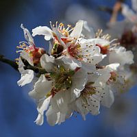 Detail van witte bloesem met blauwe lucht als achtergrond. Deze foto is ideaal voor een tuinposter /tuinposters.