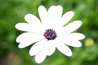Foto van een witte margriet met een groene achtergrond. Deze foto is ideaal voor een tuinposter /tuinposters.