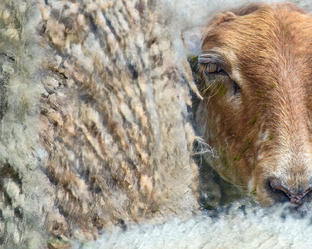 Met een aantal technische bewerkingen springt het schaap eruit en wordt de wol zacht vervaagd zodat het een tafereel wordt waar je in zou willen kruipen op een gure herfstdag.