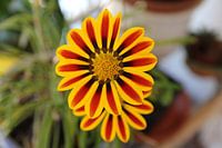 Foto van een geel/rode bloem. Deze foto is ideaal voor een tuinposter (tuinposters).