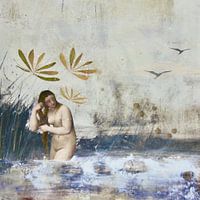 Abstract landschap met badende vrouw