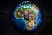 De Big five van Afrika op de wereld bol, met universum achtergrond.