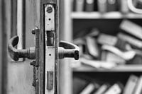 Deur van archief oude verlaten betonfabriek Betondak (Betonson) in Arkel Nederland