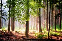 De natuur wordt opgewarmd door de eerste zonnestralen van de nieuwe dag