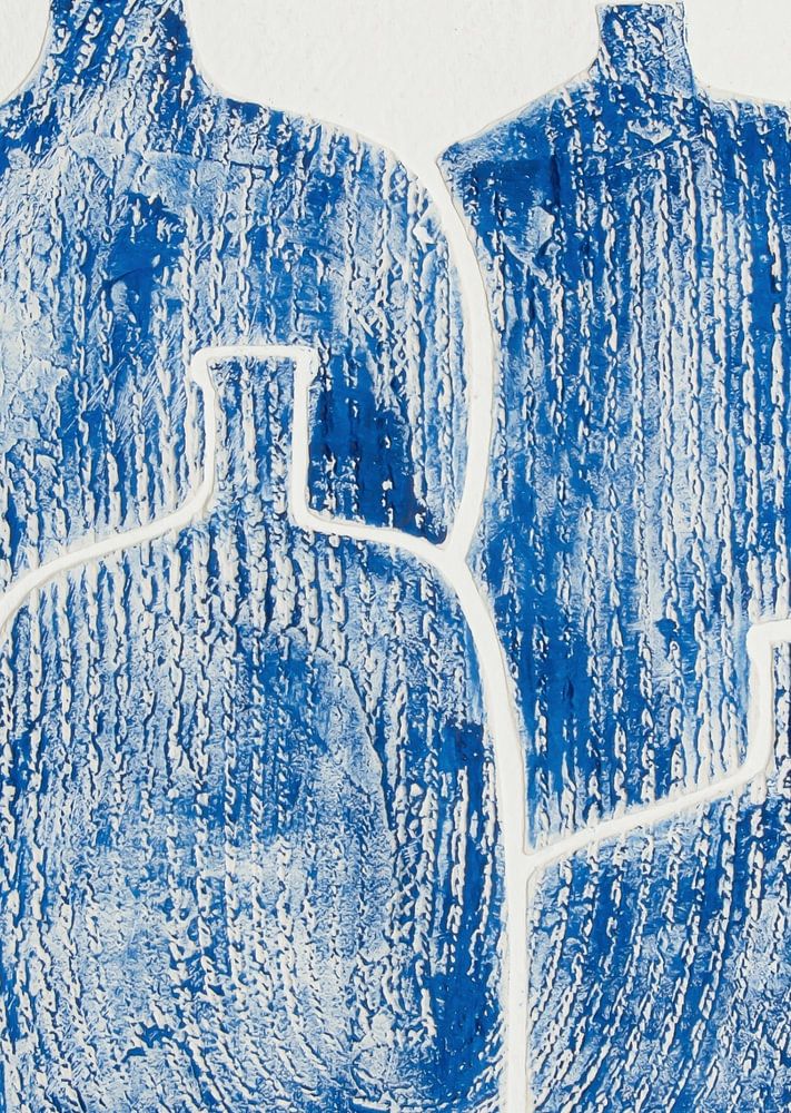 "The four blue bottles" zijn onderdeel van een serie genaamd "Still Life" van de Franse kunstenares Beatrice Chauville. Het stilleven schilderij met 4 blauwe flessen heeft een rustgevende uitstraling en is een eerbetoon aan de schoonheid van het leven. De flessen zijn geschilderd in verschillende nuances blauw, waardoor het schilderij een diepe, kalmerende sfeer heeft. Het handgemaakte papier waarop de flessen zijn afgebeeld geeft het schilderij een unieke uitstraling, waardoor het een kunstwerk is waar je naar kunt blijven kijken. De flessen staan symbool voor de kracht van natuurlijke elementen en de schoonheid van de wereld.