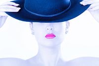Foto van een mooie jongedame met een blauwe hoed.