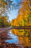 Een prachtige spiegeling van de knallende herfstkleuren tijdens een prachtige zonnige herfstdag (Indian summer) in het Speulderbos