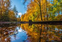 Een prachtige spiegeling van de knallende herfstkleuren tijdens een prachtige zonnige herfstdag (Indian summer) in het Speulderbos