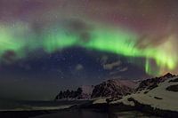 Een geweldig schouwspel boven het strand van Tungeneset, Senja, Noorwegen.