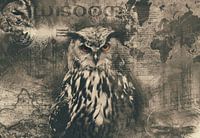 En prachtig vintage portret van de wijheid van een uil. De uilen (Strigiformes) zijn een orde van solitaire vogels met veelal een nachtelijke leefwijze. Bij veel uilen staan de ogen voor in de kop, zodat ze een groot binoculair gezichtsveld hebben, waarin ze diepte kunnen zien. Uilen hebben goed ontwikkelde oren, die ver uit elkaar staan, wat ze goed in staat stelt de richting vast te stellen waaruit een geluid komt. Deze kenmerken maken van uilen goede jagers. Door hun nachtelijke leefwijze worden ze soms ook nachtroofvogels genoemd. De orde wordt onderverdeeld in twee families: de echte uilen (Strigidae) en de kerkuilen (Tytonidae).