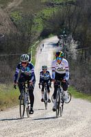 Prachtige foto van enkele van de Wolfpack dames ploeg van Ag Insurance Soudal op één van de moeilijkste beklimmingen van de Strade Bianche, de Le Tolfe klim. Je ziet op de voorgrond Kimberley LeCourt in de nationale kampioenentrui van Mauritius en Gaia Masetti.