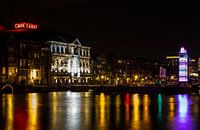 Foto van Theater Care in Amsterdam bij nacht gemaakt tijdens Amsterdam Light festival met prachtige kleuren een mooi plaatje.