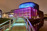 Theater De Spiegel is een van de twee theaters in het Overijsselse Zwolle. Het ligt aan het water van de Achtergracht en de markante brug in de voorgrond van de foto, heet de Spinhuisbrug.