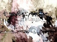Ik nam enkele foto's toen ik 's avonds op de Westminster Bridge in Londen stond en uitkeek over de Theems. De gebouwen reflecteerden in het water, maar waren gedeeltelijk verborgen door de mist. Het was bijna alsof de gebouwen en lichten uit de mist opdoemden terwijl ik stond te proberen ze te zien. In dit abstracte fotokunstwerk wilde ik dat mistige gevoel versterken. Het deed me denken aan vroeger, toen Londen last had van dichte mist, zoals je altijd ziet in de Sherlock Holmes films! Dus voegde ik een sterk filter toe en waste de kleuren uit om je dit Thames Night View Abstract te geven. Dit is er één uit een serie van drie.