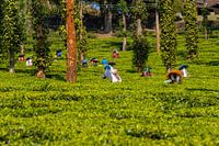 De theeplantages in Munnar zijn wereldberoemd. De theeplanten worden gebruikt voor groene thee, normale thee en witte thee. Op deze foto zie je een van de plantages in Munnar, wat op de grens tussen de Indiase staten Kerala en Tamil Nadu ligt. De prachtige, glooiende groene landschappen strekken voor je uit, terwijl er soms arbeiders de thee aan het plukken zijn. Wil je ook deze uitgestrekte landschappen bij jou aan de muur hebben hangen? Aarzel niet en bestel deze foto snel!