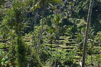 Foto van een theeveld op Bali. Bomen, oerwoud, thee. Een groene oase van een natuurlandschap. Indoniesie.