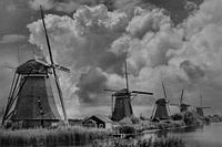 Theme B/W, Mills, Kinderdijk, The Netherlands van Maarten Kost