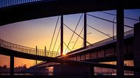 Theodor-Heuss-Brug in Düsseldorf op het blauwe uur