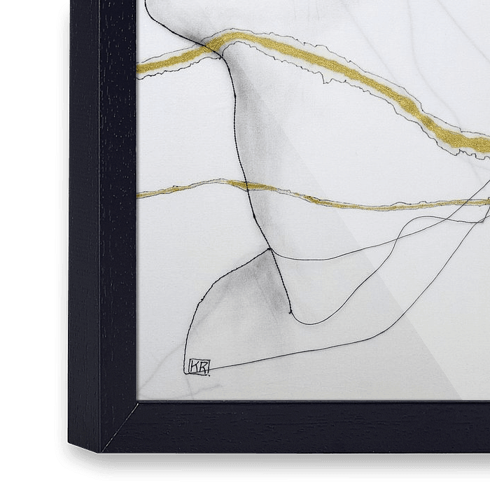 Een figuratief werk van draad & goud & houtskool op doek.