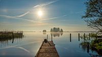 Zonsopkomst boven het Zwarte Brekken, bij SNeek, Friesland. Na een koude nacht hing er mist boven het water. De zon werd snel sterker en probeerde door de mist heen te branden. Een mooi begin van een mooie dag! Als het niet zo koud was zou je zo de steiger af willen springen.
