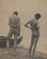 Deze foto, waarop Eakins en een student de elegante contraposto-houdingen van de klassieke beeldhouwkunst beïnvloedden, is waarschijnlijk gemaakt tijdens een excursie met studenten naar Manasquan Inlet in Point Pleasant, New Jersey, in de zomer van 1883. Hij beschouwt zijn foto's niet alleen als studies voor schilderijen, maar ook voor hun eigen bestwil, drukte Eakins zorgvuldig de beste afbeeldingen op platinapapier. In dit geval deed hij de extra moeite om de originele, horizontaal opgemaakte afbeelding te vergroten en verticaal bij te snijden om de perfect uitgebalanceerde figuren beter te kunnen bevatten.