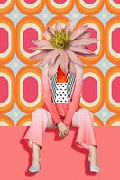 Een bijzonder, vrolijk portret van vrouw, een bonte parade met veel roze en oranje.