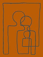 Three of them together, Terra/Prussian blue line, komt uit de serie, familie-lijntekeningen. Deze tekening geeft de bijzonder sterke verbondenheid van een familie weer. Deze personen zijn verbonden door één lijn wat de krachtige band nog meer benadrukt.