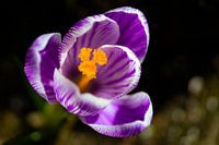 Krokus in de middagzon. Met een 90 mm-lens gemaakt.