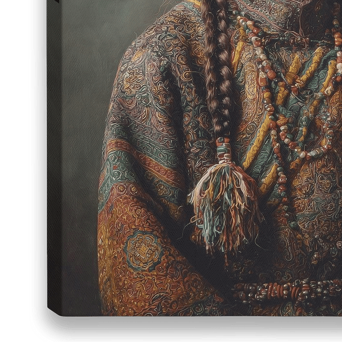 Laat je interieur spreken met Tibetaans Meisje – een krachtig en verfijnd portret dat de schoonheid van traditionele klederdracht en culturele identiteit viert. Dit werk toont een jong meisje in een rijk versierde outfit, compleet met een bonten hoofddeksel, kralenkettingen en gevlochten haar. Elk detail is een ode aan ambacht, traditie…