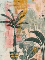 Ticket to the tropics. Vrolijke illustratie in pastelkleuren, bohemian stijl. Kies zelf het formaat en materiaal bij dit werk en maak het helemaal passend voor jouw interieur.