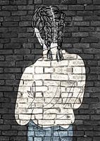 Jonge vrouw graffiti op een oude zwarte muur. Leuke decoratie voor uw woonkamer, slaapkamer, tienerkamer of keuken.