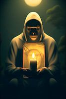 Dompel jezelf onder in dit betoverende kunstwerk, met een prachtig digitaal schilderij van een gorilla in een witte capuchon, zittend in de schaduw maar verlicht door de flikkerende gloed van kaarslicht dat een levendig beeld creëert. Het complexe karakterontwerp en de rijke, dramatische sfeer brengen een gevoel van mysterie over dat…