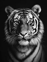 Dit zwart-wit minimalistische fine art werk toont de sierlijke kracht van een tijger. Het gevoel van rust en kalmte wordt gecreëerd door de simpele lijnen van het dier, waardoor het een tijdloze en elegante uitstraling heeft. Het contrast van het zwarte dier tegen de witte achtergrond zorgt voor een diepe focus op de tijger. Dit werk is perfect voor een modern en strak interieur dat op zoek is naar een vleugje wilde schoonheid.
