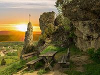 Rotsformatie in het dal van de Aufseß in Frankisch Zwitserland