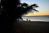 Onder de elegante takken van een palmboom die zachtjes danst in de tropische bries, is een strand op de Filippijnen uitgedost in zijn mooiste kleuren om het einde van de dag te verwelkomen. Beneden staat een gezin op het gouden zand en bewondert verwonderd het natuurlijke schouwspel. De lucht staat in vuur en vlam met warme tinten - oranje, roze en paars - die weerkaatsen tegen de kalme oceaan die zich zo ver het oog reikt uitstrekt. De sfeer is vredig, doordrenkt van een gevoel van eenheid en dankbaarheid voor de schoonheid van het moment. De contouren van de palmbomen en menselijke silhouetten voegen een speciale diepte toe aan het tafereel en versterken het gevoel dat je je in het hart van een tropisch paradijs bevindt. Deze zonsondergang is niet alleen een natuurlijk fenomeen; het symboliseert ook momenten van samenzijn en delen, versterkt door een idyllische omgeving.