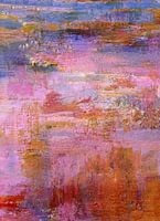 ...een spel met kleuren en materialen, jezelf laten drijven - leiden tot een subtiel spel van vormen, contrasten en vervormingen...scheuren en depressies tonen een spannend spectrum tussen worden en vergaan...