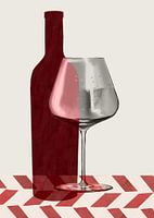 Tijd voor Wijn is een grafische weergave van een fles wijn met glas op een tafel met een grafisch patroon
