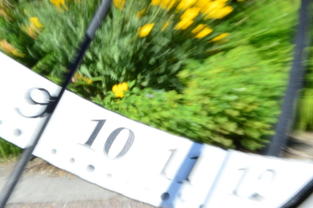 Ik kon het niet laten om mijn zoomlens te gebruiken op deze zonnewijzer in de botanische tuin van de stad Visby op het eiland Gotland in Zweden. Ik vind dat het een mooi artistiek effect heeft gecreëerd.
