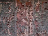 Concept van vergankelijkheid: oude vlokkenverf op houten ondergrond