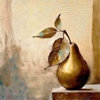 Koop dit stilleven Tijdloos Stilleven. Gouden Peer op tafeltje van Studio Pieternel op canvas, aluminium dibond, (ingelijste) fotoprint, behang en ArtFrame, op maat geprint in Fine-Art kwaliteit.