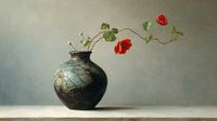 Zachte, minimalistische bloemencompositie die Japanse esthetiek combineert met rustige natuurlijke tinten, eenvoudige vormen en uitgebalanceerde negatieve ruimte, waardoor een serene, moderne en tijdloze botanische harmonie ontstaat.