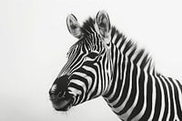 "Tijdloze Strepen" toont een elegante zebra in een perfect gebalanceerd zwart-wit contrast, waarbij de iconische strepen scherp afsteken tegen een minimalistische achtergrond. De eenvoudige compositie benadrukt de natuurlijke schoonheid en unieke patronen van de zebra's vacht. Dit monochrome portret straalt een klassieke en serene sfeer uit, ideaal voor moderne en minimalistische interieurs die houden van subtiele, doch krachtige natuurelementen.