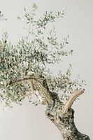 Deze opvallende afbeelding van een oude olijfboom legt de eenvoudige elegantie en natuurlijke schoonheid van de boom vast in een minimalistische stijl. De fijne details van de knoestige takken en zilverkleurige bladeren steken af tegen een zachte achtergrond, waardoor de aandacht wordt gevestigd op de unieke vorm en textuur van de boom. Dit kunstwerk is ideaal voor moderne woonruimtes of kantoren, brengt een kalme, meditatieve sfeer in elke kamer en is perfect voor liefhebbers van natuur en minimalistische kunst.