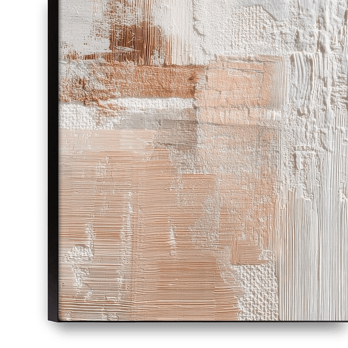 Warme aardetinten en zachte crèmekleuren vormen samen een elegante, evenwichtige compositie vol structuur en diepte. Fijne lijnen, gepleisterde vlakken en subtiele overgangen zorgen voor een spannend samenspel van rust en beweging. Het gelaagde oppervlak geeft het werk een levendige en tegelijkertijd harmonieuze uitstraling, die zowel…