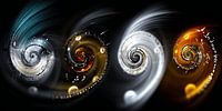 In deze moderne kunstprint vouwt de tijd zich op als een spiraal zonder begin of einde. Licht en duister cirkelen als tegenpolen rond een onzichtbare kern, symbool voor balans, dualiteit en oneindigheid.