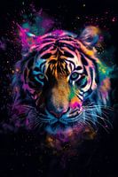 "Tijger Odyssey" nodigt de kijker uit op een ontdekkingsreis door een kosmisch landschap, met een tijger die als majestueuze gids optreedt. Dit fascinerende portret vermengt de natuurlijke patronen van de tijger met een spetterende kosmische achtergrond van diepzwart, doorspekt met sterren en nevels in levendige tinten roze, blauw en goud. De intense blik van de tijger, verlicht door de hemelse gloed, vormt een krachtig middelpunt dat zowel ontzag als een diepe verbondenheid met het universum oproept. Dit kunstwerk is een lofzang op de mysterieuze schoonheid van de wilde natuur en de oneindige wonderen van het heelal, een must-have voor elke kunstverzamelaar en liefhebber van dieren en sterrenkunde.