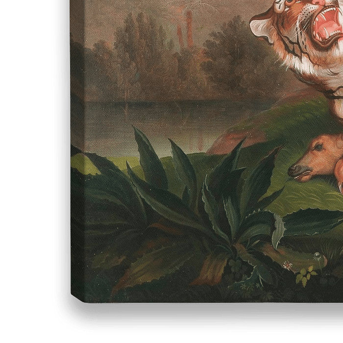 Koop Tijger en leeuw vechten om een Fawn, Johann Wenzel Peter... als reproductie op canvas, aluminium dibond, (ingelijste) fotoprint, behang en ArtFrame, op maat geprint in Fine-Art kwaliteit.
