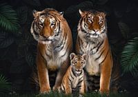 Een prachtige werk van een tijger familie met 1 welp. Dit werk is ook verkrijgbaar met 4 welpen, 3 welpen en 2 welpen.