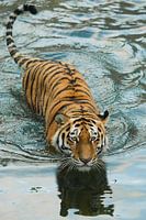 Koop de foto Tijger in het water. van Michael Semenov als print op canvas, aluminium dibond, (ingelijste) fotoprint, behang en ArtFrame. Voor jou op maat geprint in Fine-Art kwaliteit.