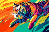 Een sprankelende wanddecoratie die je interieur tot leven brengt! Dit dynamische ontwerp toont een energieke tijger in een explosie van levendige kleuren. Met zijn krachtige uitstraling en speelse kleurenpalet past het perfect in moderne woonruimtes, kantoren of hobbykamers. Deze unieke wanddecoratie is een echte blikvanger en voegt een gevoel van beweging en kracht toe aan je muren. Ideaal voor liefhebbers van dieren en kunst.